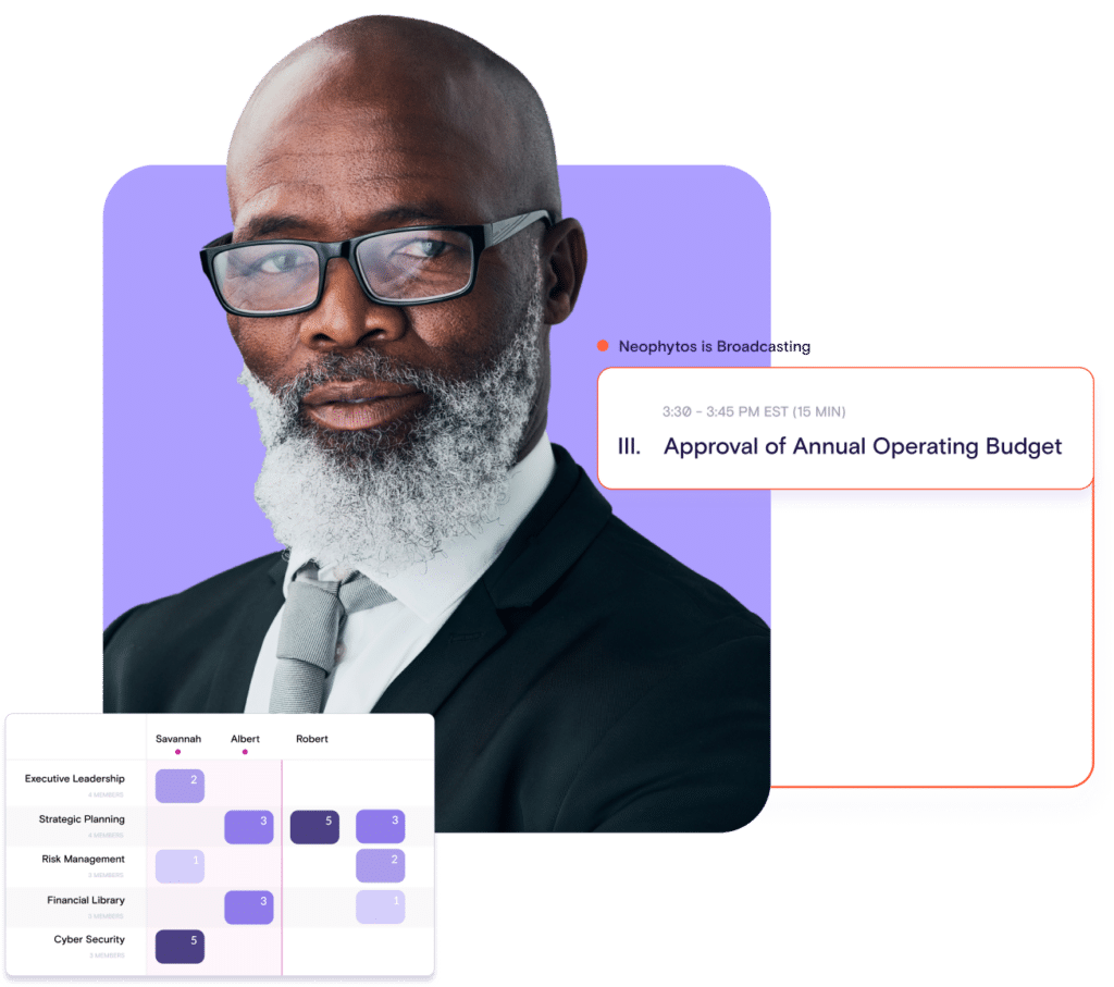 Move meeting creation, distribution, and documents into a single secure system of record. With intuitive design, guided support, and closed-loop AI, cut the admin chaos with a board management platform that helps every leader walk in ready to decide.