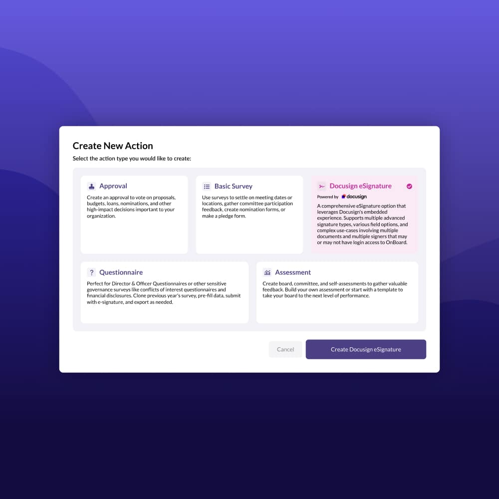 Talk with the OnBoard team to learn more about how you can start using Docusign in your board workflows.