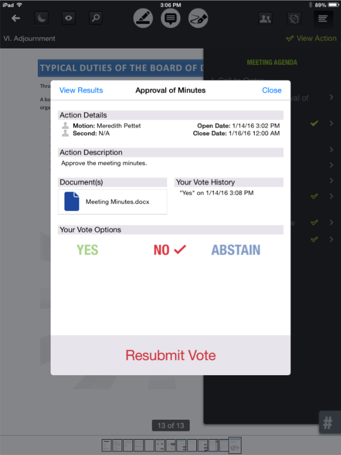 Any action that demands an approval throughout your meeting, from dispensing with Minutes to more pressing actions, is now simply embedded into the agenda. Full supporting documents are right at your fingertips. This overhaul was focused on making it easier than ever to arrive at the meeting prepared to take action.