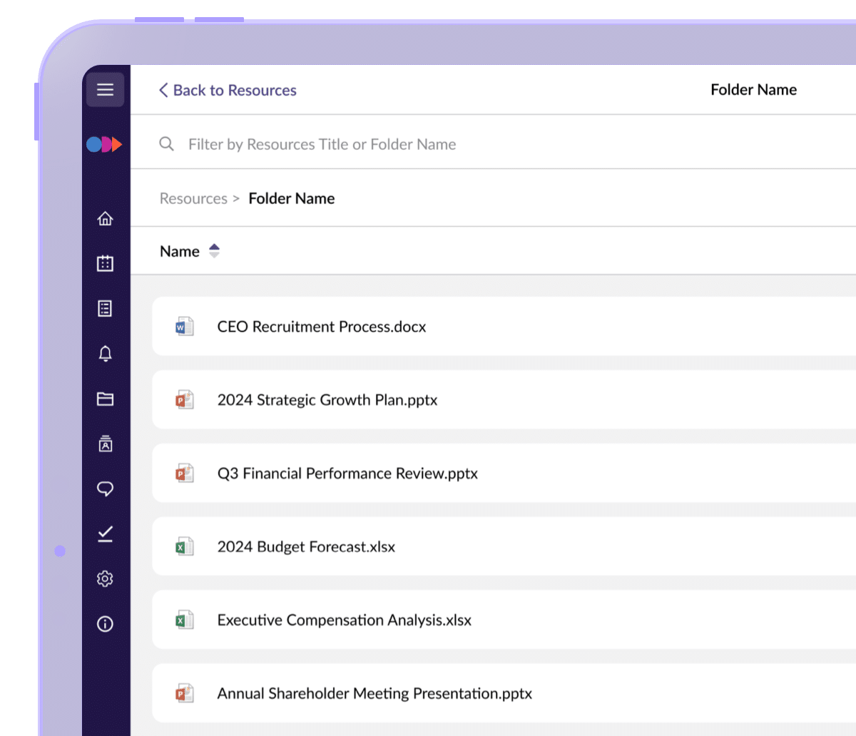 Centralize every board file so people stop hunting and start working. Organize with folders and quick search, add any common format, and keep drafts out of email. Everyone knows where the final lives.