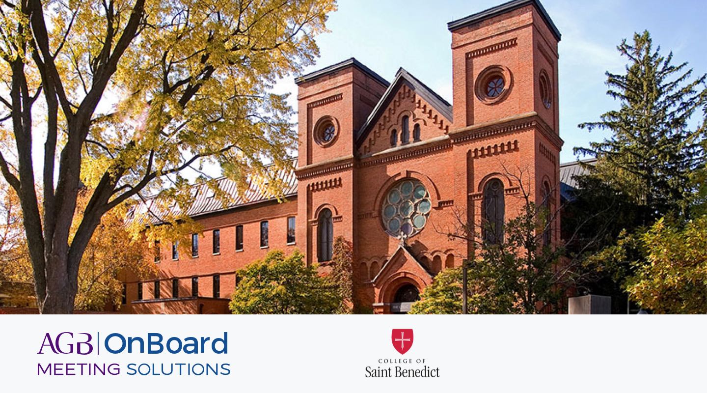 The College of Saint Benedict’s Chief of Staff and Lead Title IX Coordinator, Kathryn Enke, learned about AGB OnBoard through her engagement with the National Association of Presidential Assistants in Higher Education (NAPAHE). As a Board member with NAPAHE, Enke got an end-user’s view of the portal’s features and capabilities, which led to further exploration. AGB OnBoard proved so simple for the end user and included impressive options to work offline or push out last minute changes. Powerful functionality around security, permissions, archiving materials, and uploading materials quickly were key to the decision to move forward with implementing the solution at the College of Saint Benedict and its partner, Saint John’s University.