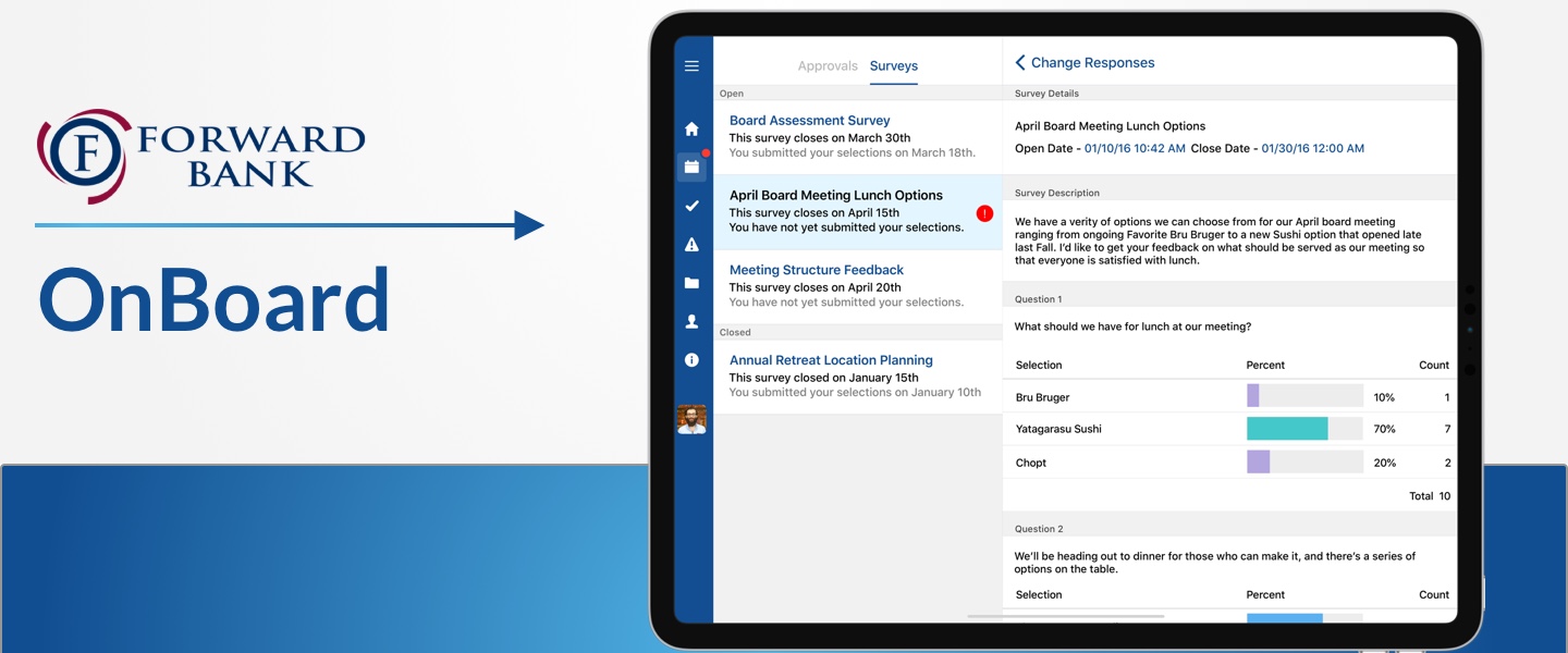Today, Forward Bank is able to quickly pull together a survey, send it to their directors, compile the data, and discover actionable results.
