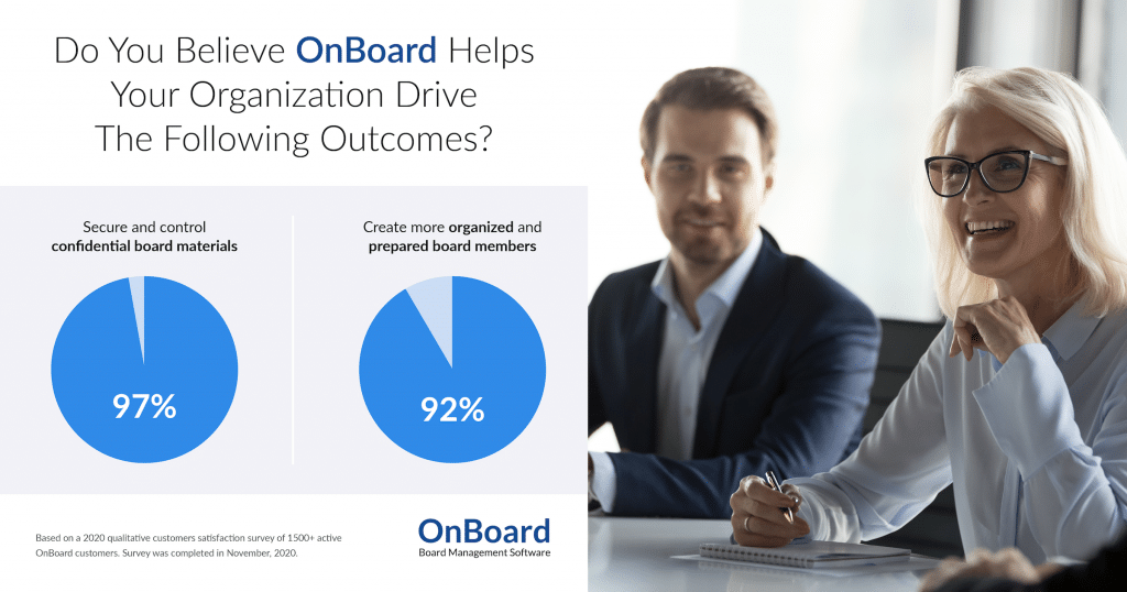 OnBoard drives real-world outcomes for boards and leaders such as maintaining security and helping get more organized.