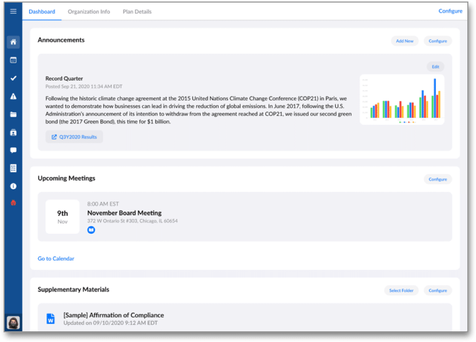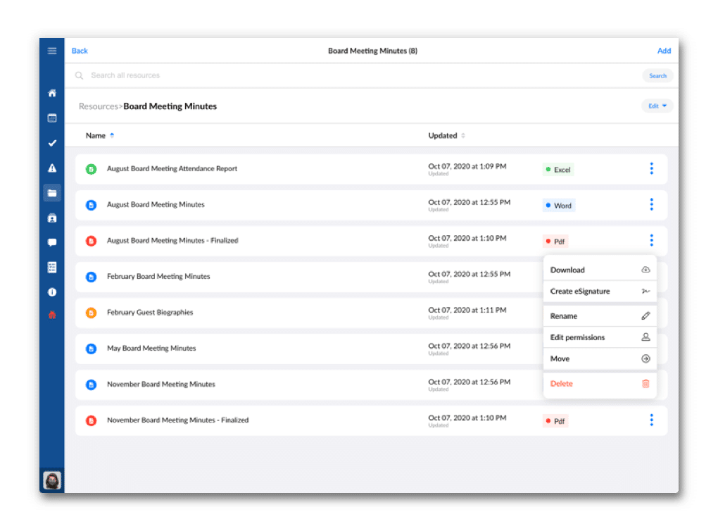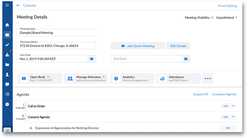 Meetings are an essential part of the OnBoard experience, and we’ve taken great care to make thoughtful updates that enhance the meeting user experience. In addition to making text labels more clear, we have created more standard views, regardless if someone is an Admin or User. Improvements include: