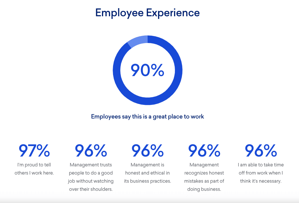 - 96% say Management trusts people to do a good job without watching over their shoulders.