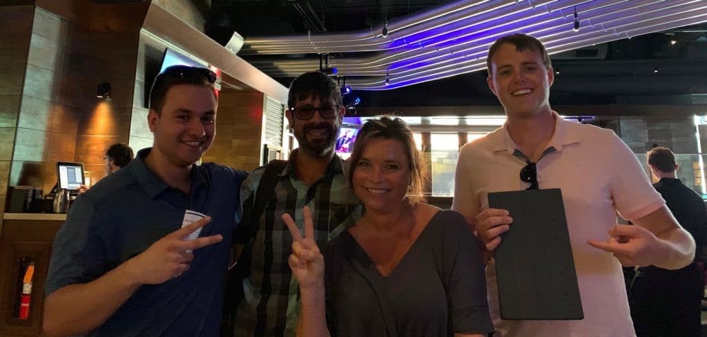 Reena [Gangwani, SDR Manager] organized a scavenger hunt through Indianapolis that was pretty crazy. I ended up singing with a gondolier on the canal. We went and danced by the Ann Dancing sign on Massachusetts Avenue, but it was turned off, so we were the only ones dancing. My team ended up getting second place in the scavenger hunt!