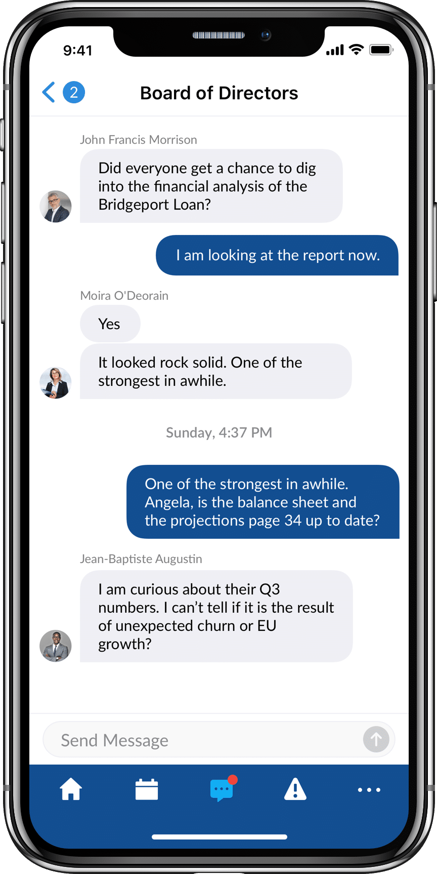 And because the data lives within the same platform as the rest of your board work, you’ll never have to worry that board communications are exposed if an email is hacked or a phone is lost. Messenger encrypts every message, so board directors and executives no longer have to rely on inherently unsecure communications tools like email, SMS, Twitter, or resort to a phone call to get important tasks done or find the answers they need.