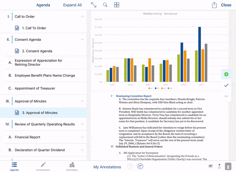 Our Next Generation Annotations tool provides directors and leaders the ability to simply start a conversation about any aspect of their board books. The ability to share these next gen notes are all part of a greater whole when it comes to creating a more collaborative experience.
