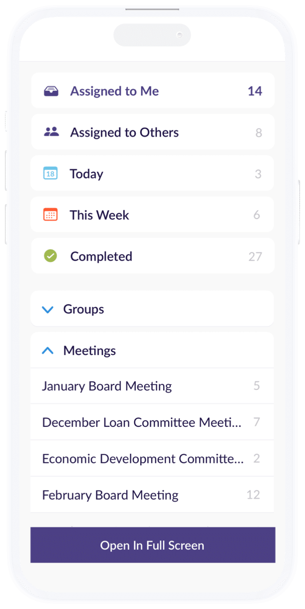 View all assigned action items in one place, providing clarity and prioritization for board members.