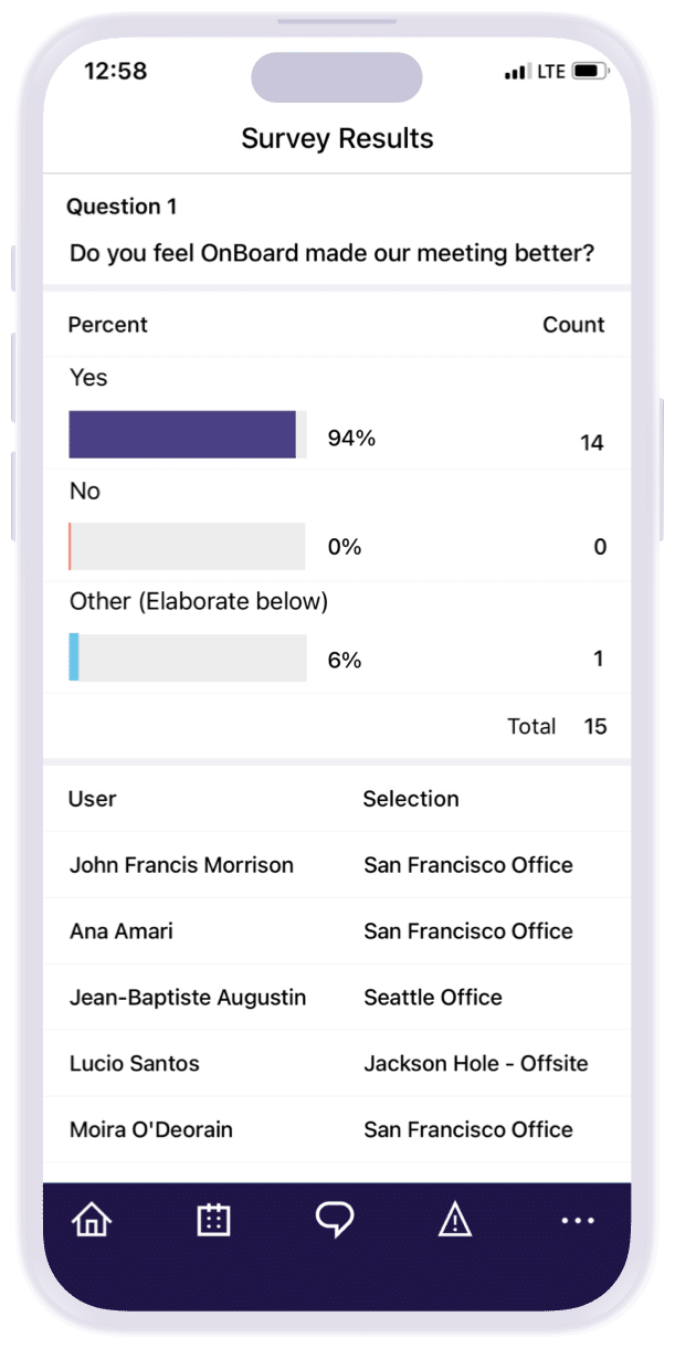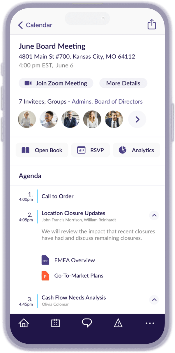 Accelerate your board's decision-making with OnBoard’s responsive Voting & Approvals feature. Secure, straightforward, and ready to use, this tool keeps your organization agile and responsive.