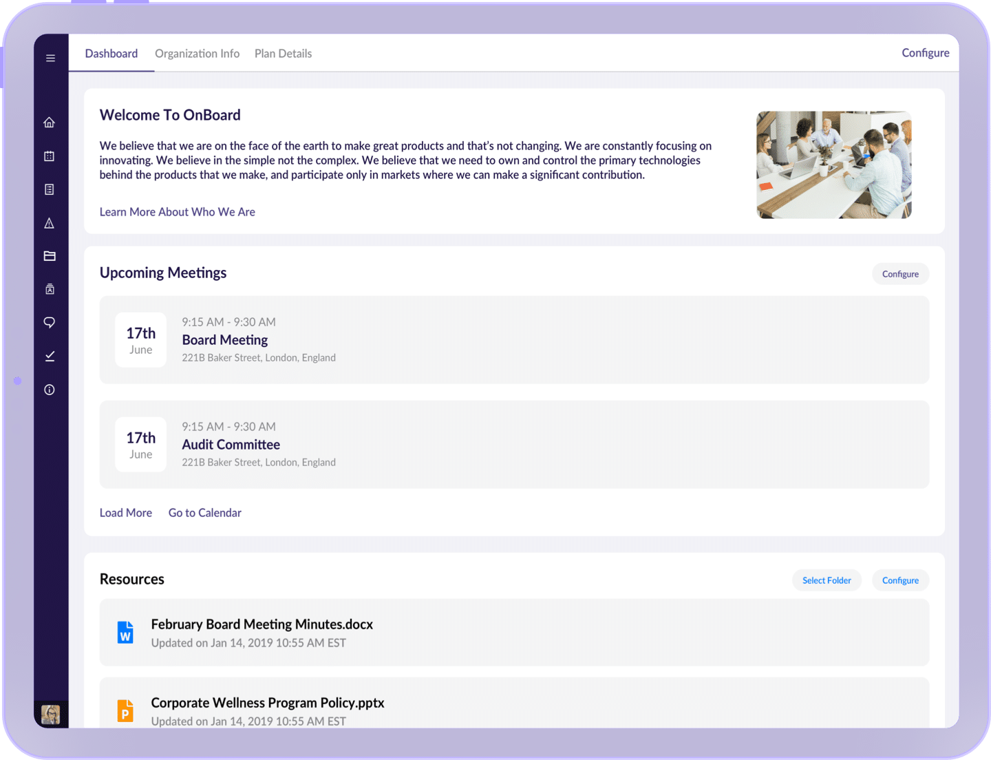 Replace antiquated portals with OnBoard's fluid ecosystem, where boards make decisions with speed and precision. Elevate your governance beyond the status quo, embracing a future of efficiency and clarity.