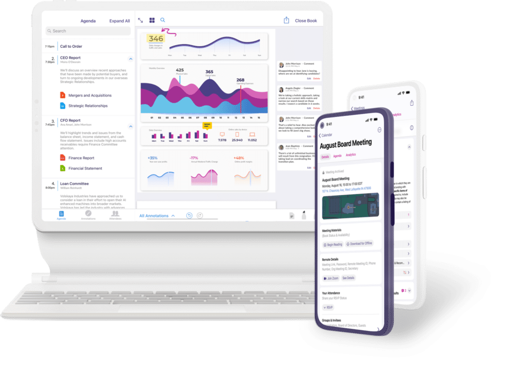 Elevate your board from the static confines of paper and PDFs to OnBoard's dynamic life cycle management. Our platform provides interactive tools for real-time assessments, diversity analysis, and skills tracking, enabling a living, breathing approach to governance that grows with your organization.