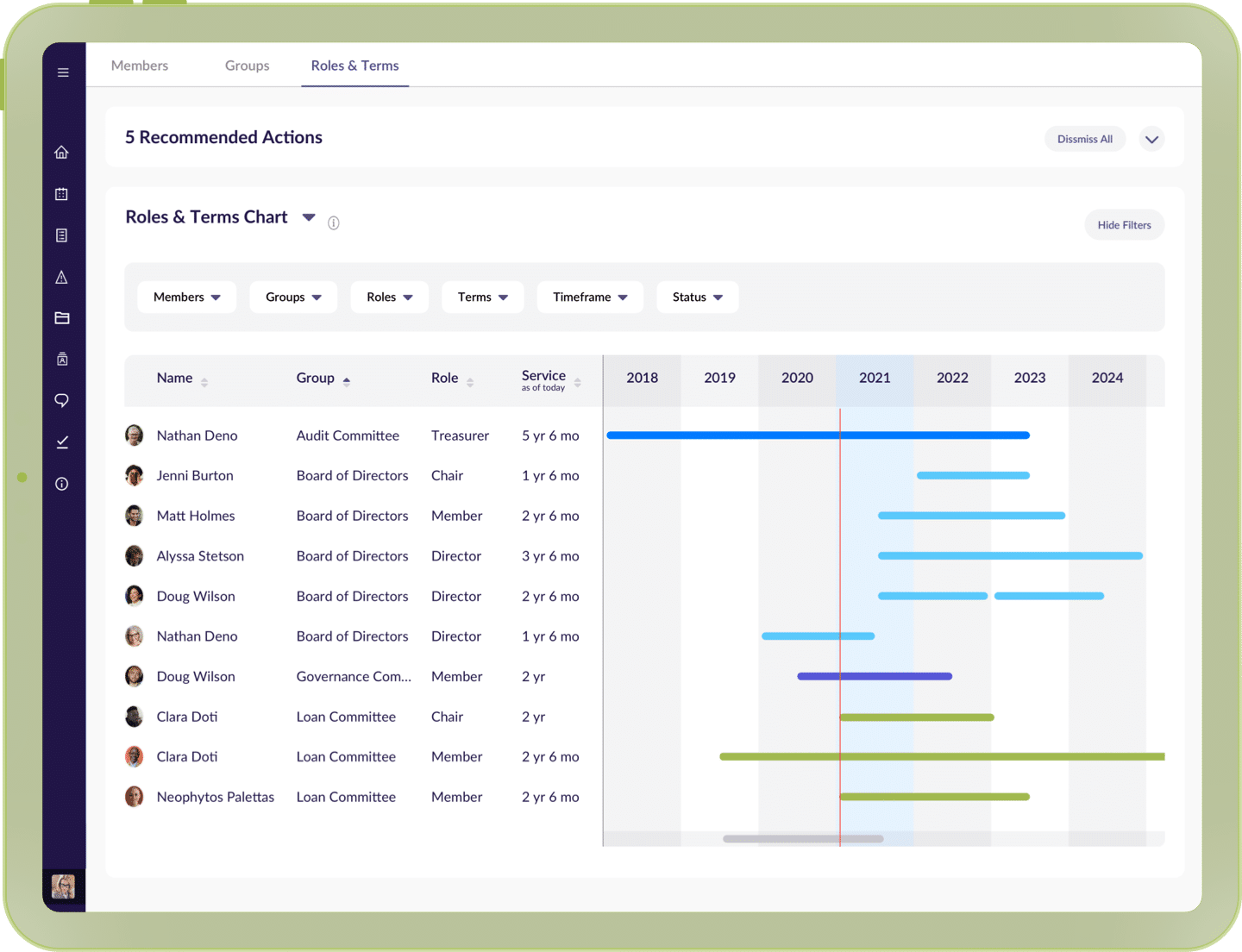OnBoard Skills Tracking gives you insights into competencies for better visibility into current board composition. Quickly identify your board’s experience in specific areas and highlight gaps, then take action or build a recruiting plan that fits your organization’s strategic direction.